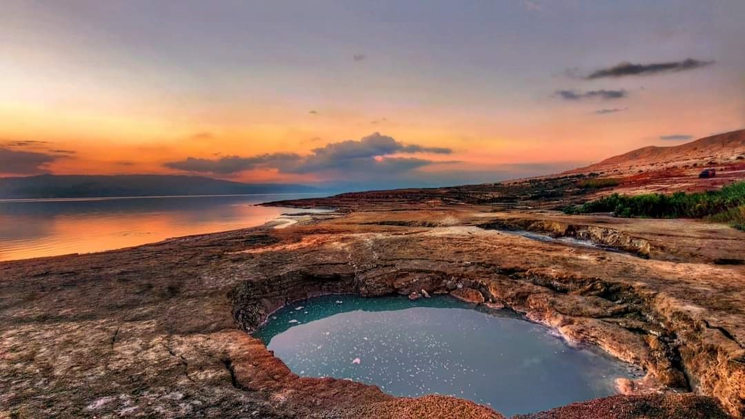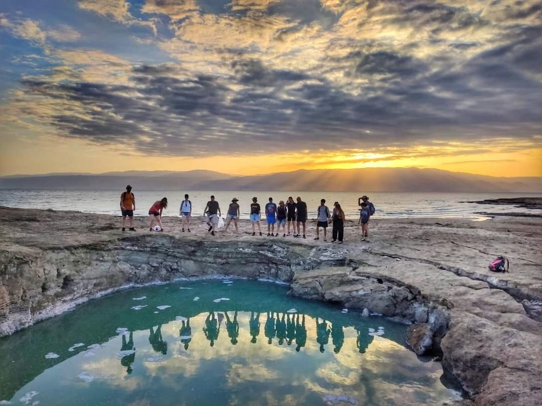 טיול זריחה בהדרכת ערן גל-אור, בין בולענים צבעוניים, נחלים ובריכות לחוף ים המלח