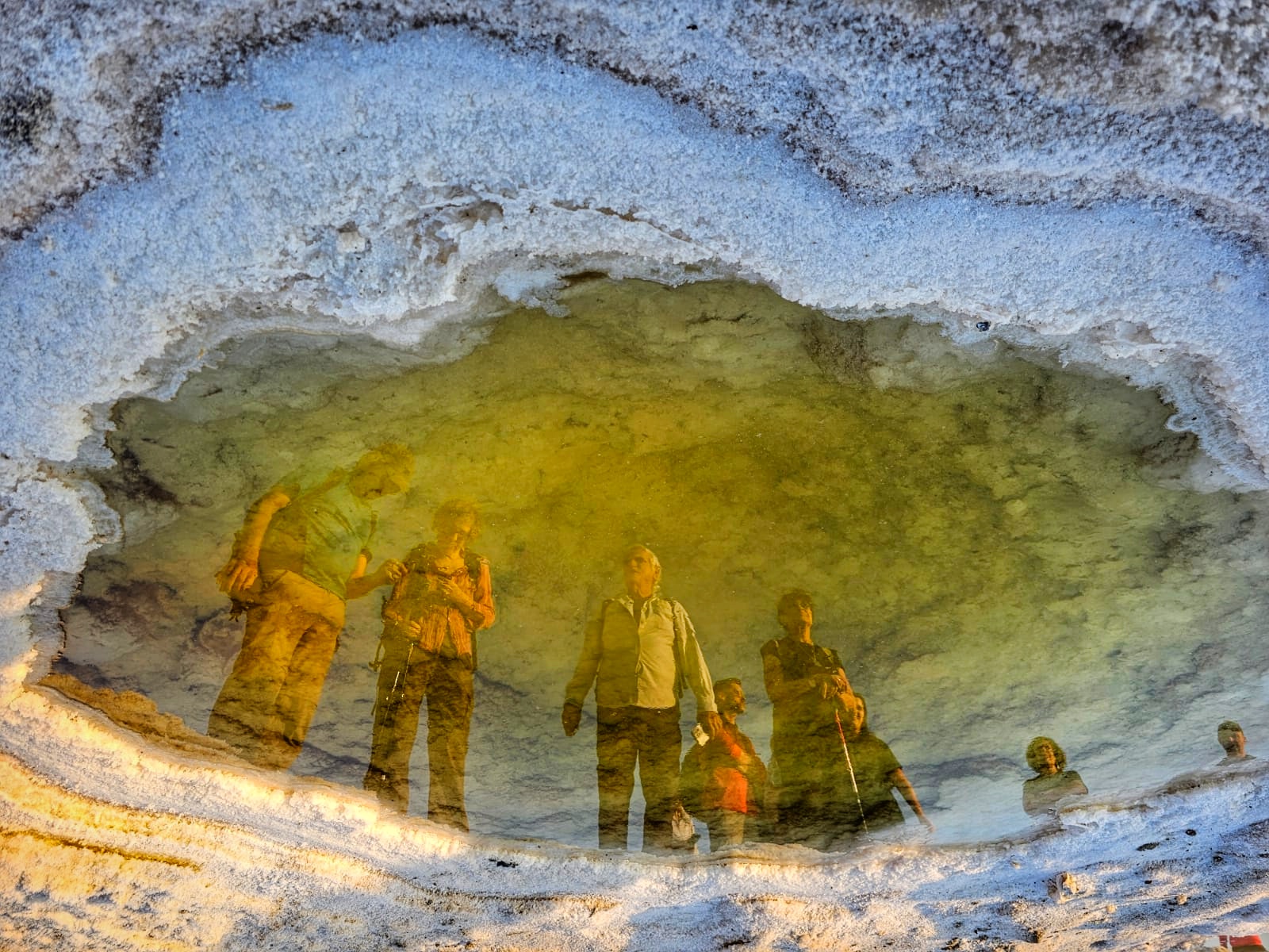 מראה השמש המתרוממת מעל ים המלח, הוא אחד המראות המרגשים בארצנו. כאשר פוגשים אותו מעל בולענים מלאים מים – הופכת החוויה מיוחדת עוד יותר, חוויה של פעם בחיים. טיול הבולענים בשעת זריחה מוביל אותנו לאורך חוף ים המלח, בין בולענים שמלאים במים בשלל צורות וצבעים. נחצה נחלים קטנים של מים מתוקים שחוצבים את דרכם אל הים, וניכנס לרחצה באגם מדהים מלא בוץ בריא ומים מתוקים. בדרכנו נגלה תצורות קרקע מיוחדות, אדמה שנראית כמו עוגת שכבות, נמצא גבישי מלח ריבועיים לצד גושי מלח ענקיים בצורות משונות, וכמובן נלמד כיצד נוצרו התופעות המרתקות | הטיול יוצא מטעם ובשיתוף חברת “סודות ים המלח” (גיא גולן)